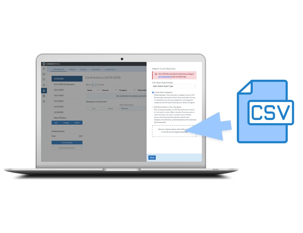 simplify your workflow. No more creating giving dates each time you need to add all your contributions from a 3rd party provider. Just download the CSV file from your provider, import it to ChurchTrac, and the software will do the rest. It's not magic, it's code. ?♂️