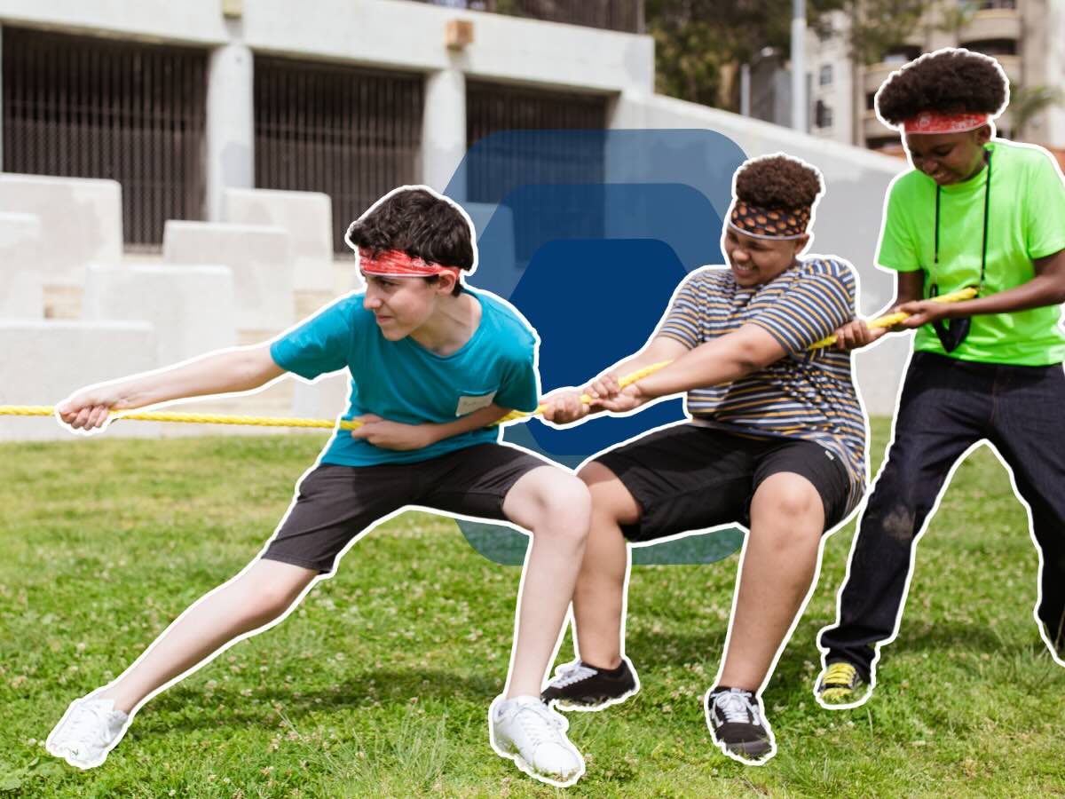 Divide your group into two teams and give each team an end of a long rope. Make sure there's a clear marker in the center of the rope. The teams then try to pull the rope in their direction. The team that manages to pull the marker past a designated line wins.